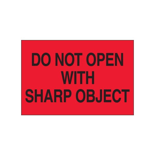 2 x 3'' - ''Do Not Open with Sharp Object'' Fluorescent Red Labels