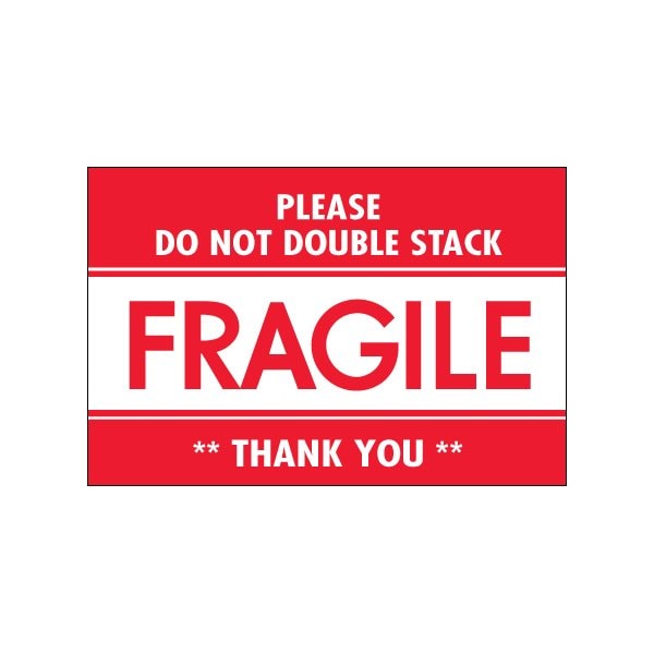 2 x 3'' - ''Fragile - Do Not Double Stack'' Labels