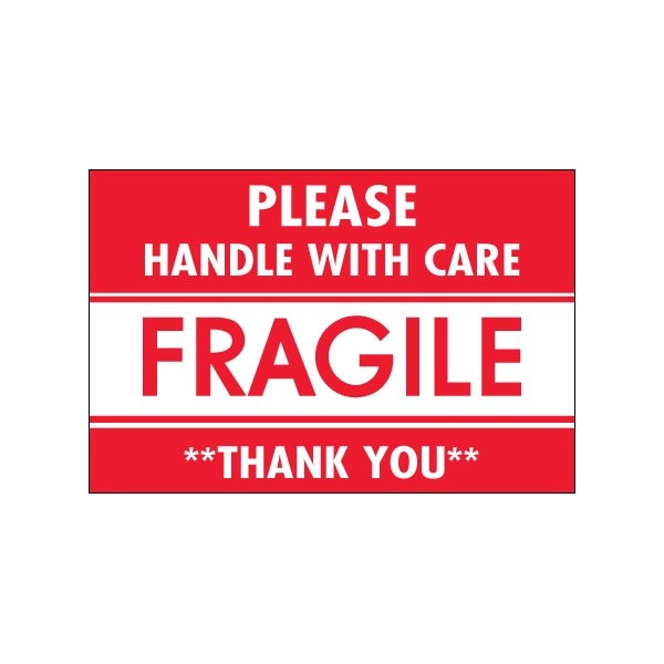 2 x 3'' - ''Fragile - Handle With Care'' Labels, Style 1, 500PK