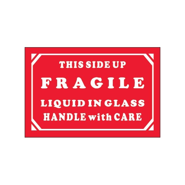 2 x 3'' - ''Fragile - Liquid In Glass - Handle With Care'' Labels