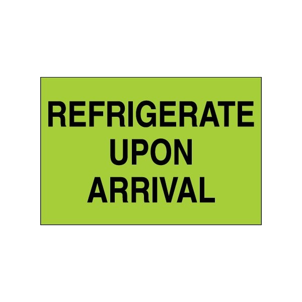 2 x 3'' - ''Refrigerate Upon Arrival'' Fluorescent Green Labels