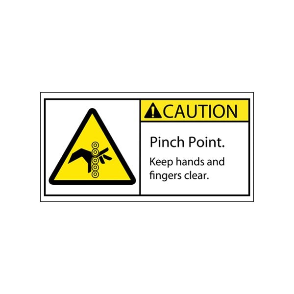 2 x 4'' - Caution Pinch Point Rollers Durable Safety Label