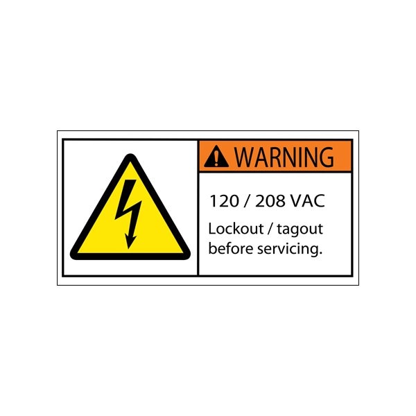 2 x 4'' - Warning 120/208 VAC Durable Safety Label