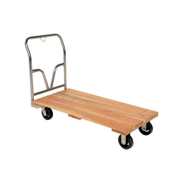 Hardwood Platform Trucks are the economical solution for material handling. Constructed from 7/8'' thick hardwood; Units roll smoothly on 6 x 2'' mold-on-rubber casters, two rigid and two swivel included; Casters and removable steel push handle are bolted on; Counter sunk holes allow for a smooth deck surface.