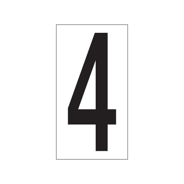 Mark location on racks, shelves and equipment. Strong, permanent adhesive backed vinyl labels; Labels are 4 x 2 1/8''; Letter or number on label is 3 1/2''; Convenient kits available with sets of numbers or letters. This product is equivalent to part number: S-5662-4. Sold in a quantity of 50 per case.