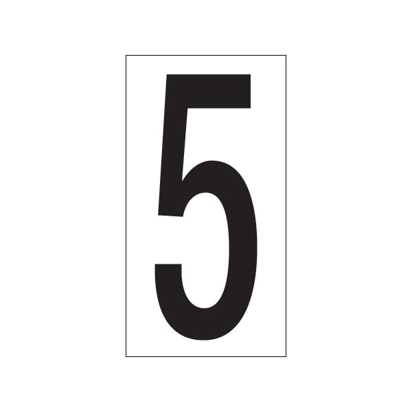 Mark location on racks, shelves and equipment. Strong, permanent adhesive backed vinyl labels; Labels are 4 x 2 1/8''; Letter or number on label is 3 1/2''; Convenient kits available with sets of numbers or letters. This product is equivalent to part number: S-5662-5. Sold in a quantity of 50 per case.