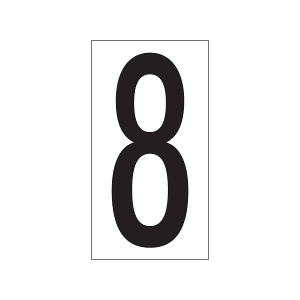 Mark location on racks, shelves and equipment. Strong, permanent adhesive backed vinyl labels; Labels are 4 x 2 1/8''; Letter or number on label is 3 1/2''; Convenient kits available with sets of numbers or letters. This product is equivalent to part number: S-5662-8. Sold in a quantity of 50 per case.