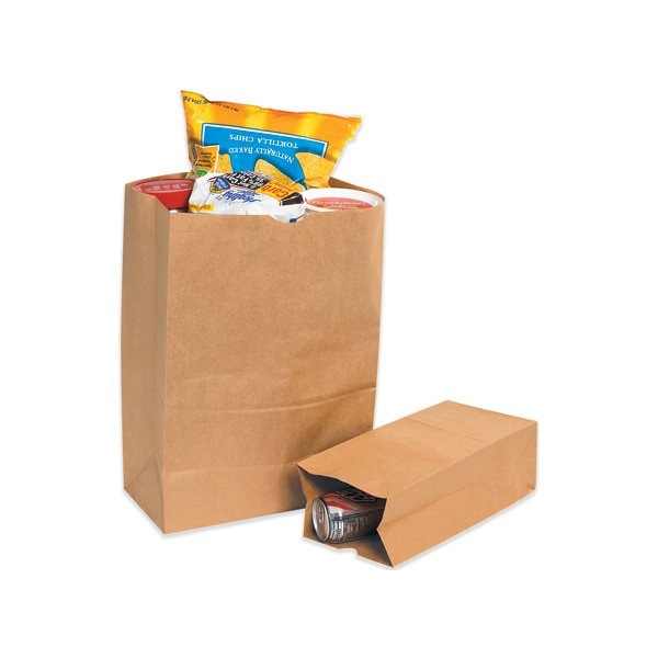 These strong bags are popular for packing purchases in retail applications. Side walls of bags are gusseted to make packing multiple or bulky items easier; Bags feature a thumb notch to make them easy to open; Sturdy paper bags are reusable and recyclable; Feature a pinch bottom. This product is equivalent to part number: S-9826. Sold in a quantity of 2000 per case.