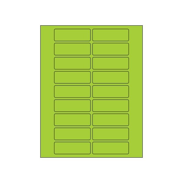 3 x 1'' Fluorescent Green Rectangle Laser Labels, 2000PK