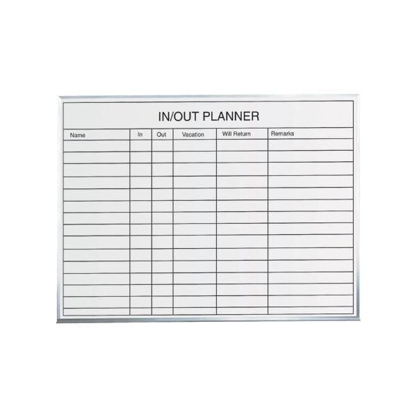Keeps track of employees in a small company or on shifts. Magnetic Porcelain Boards; Includes bold, black graphicase; Satin anodized, aluminum frame; Factory installed mounting hangers; 1/4'' depth.