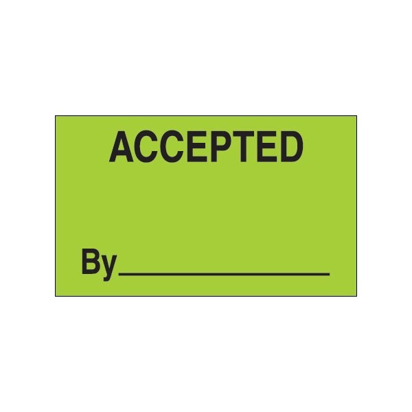 3 x 5'' - ''Accepted By'' Fluorescent Green Labels