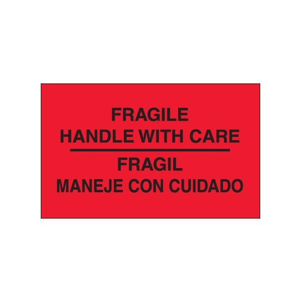 3 x 5'' - ''Fragil - Maneje Con Cuidado'' Fluorescent Red Bilingual Labels