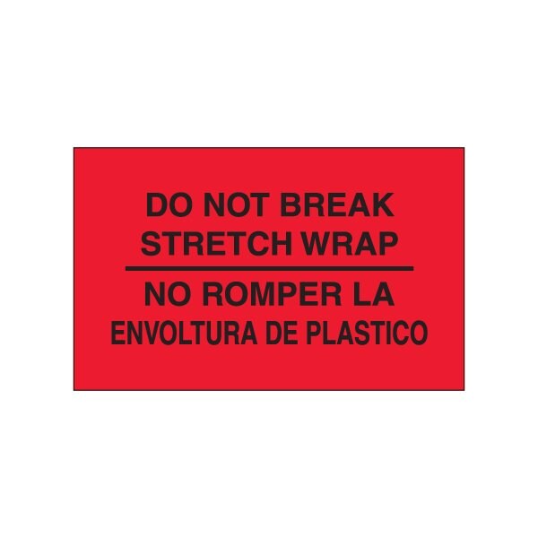 3 x 5'' - ''No Romper La Envoltura De Plastico'' Fluorescent Red Bilingual Labels
