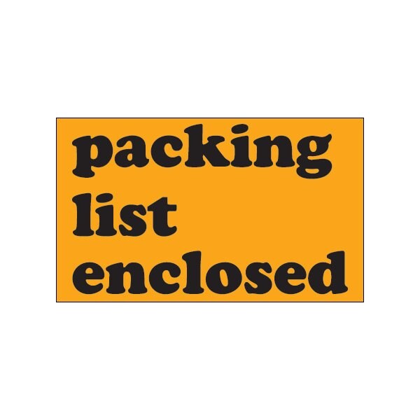 3 x 5'' - ''Packing List Enclosed'' Fluorescent Orange Labels
