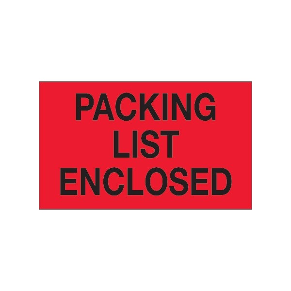 3 x 5'' - ''Packing List Enclosed'' Fluorescent Red Labels, Style 1, 500PK