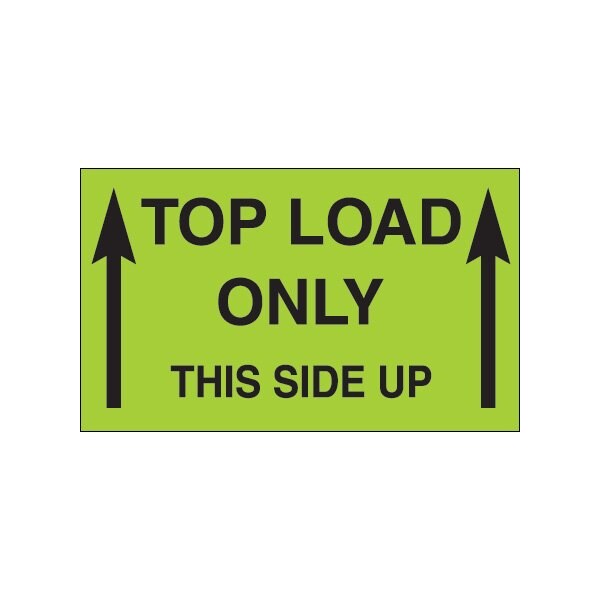 3 x 5'' - ''Top Load Only - This Side Up'' Fluorescent Green Labels