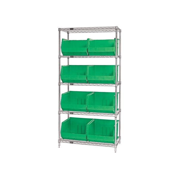 36 x 18 x 74'' - 5 Shelf Wire Shelving Unit with 8 Green Bins
