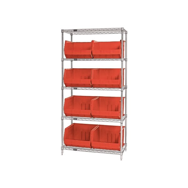 36 x 18 x 74'' - 5 Shelf Wire Shelving Unit with 8 Red Bins