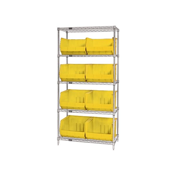 36 x 18 x 74'' - 5 Shelf Wire Shelving Unit with 8 Yellow Bins
