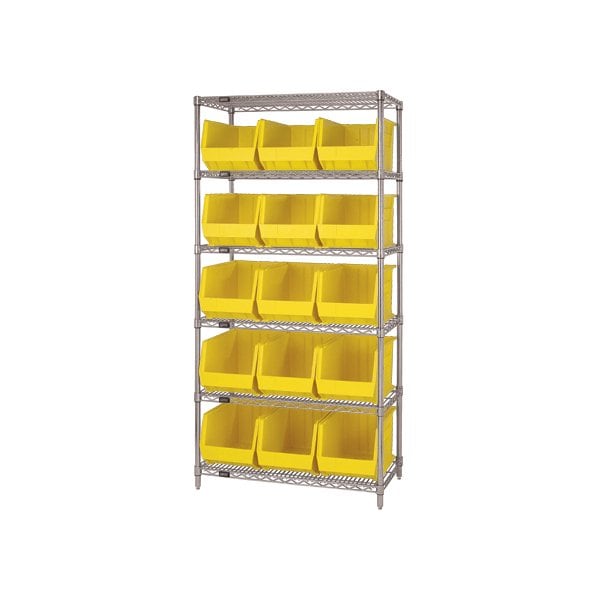 36 x 18 x 74'' - 6 Shelf Wire Shelving Unit with 15 Yellow Bins