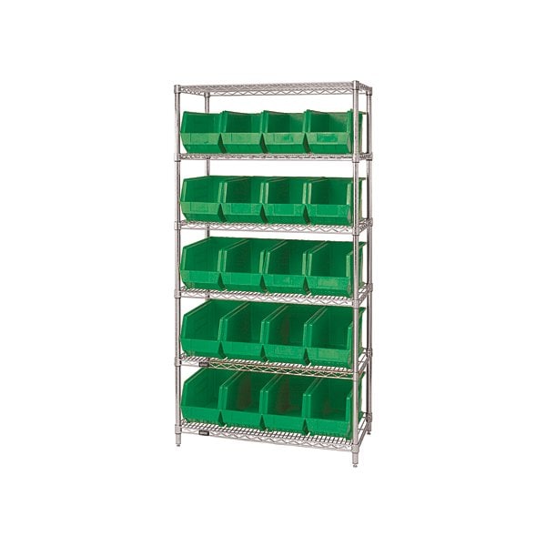 36 x 18 x 74'' - 6 Shelf Wire Shelving Unit with 20 Green Bins