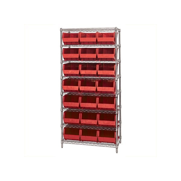 36 x 18 x 74'' - 8 Shelf Wire Shelving Unit with 21 Red Bins
