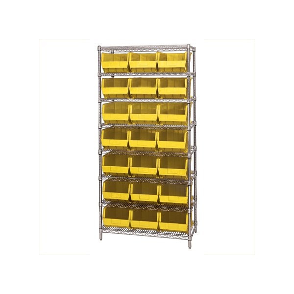 36 x 18 x 74'' - 8 Shelf Wire Shelving Unit with 21 Yellow Bins