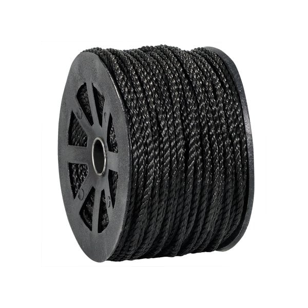 3/8'', 2,450 lb, Black Twisted Polypropylene Rope