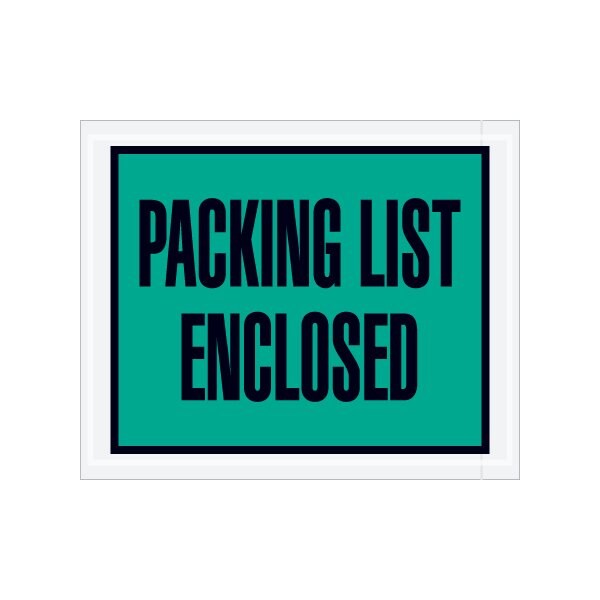 Pressure sensitive packing list envelopes secure and protect documents that are attached to the outside of shipments. Full face, colored Packing List Envelopes are pre-printed with ''Packing List Enclosed'' on heavy 2 Mil poly; Hot melt adhesive backing provides strong adhesion to paper and corrugated products; Envelopes open along the first dimension. Sold in a quantity of 1000 per case.