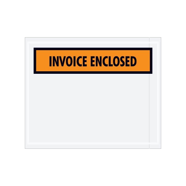 Pressure sensitive envelopes secure and protect documents that are attached to the outside of shipments. Pre-printed with ''Invoice Enclosed'' on heavy 2 Mil poly; Hot melt adhesive backing provides strong adhesion to paper and corrugated products; Envelopes open along the first dimension. This product is equivalent to part number: S-209. Sold in a quantity of 1000 per case.