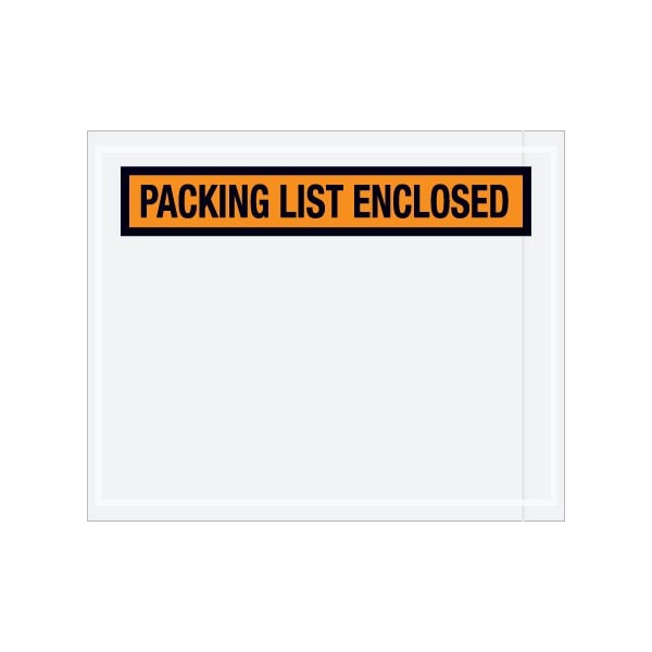 Pressure sensitive packing list envelopes secure and protect documents that are attached to the outside of shipments. Panel face, colored Packing List Envelopes are pre-printed with ''Packing List Enclosed'' on heavy 2 Mil poly; Hot melt adhesive backing provides strong adhesion to paper and corrugated products; Envelopes open along the first dimension. This product is equivalent to part number: S-207. Sold in a quantity of 1000 per case.