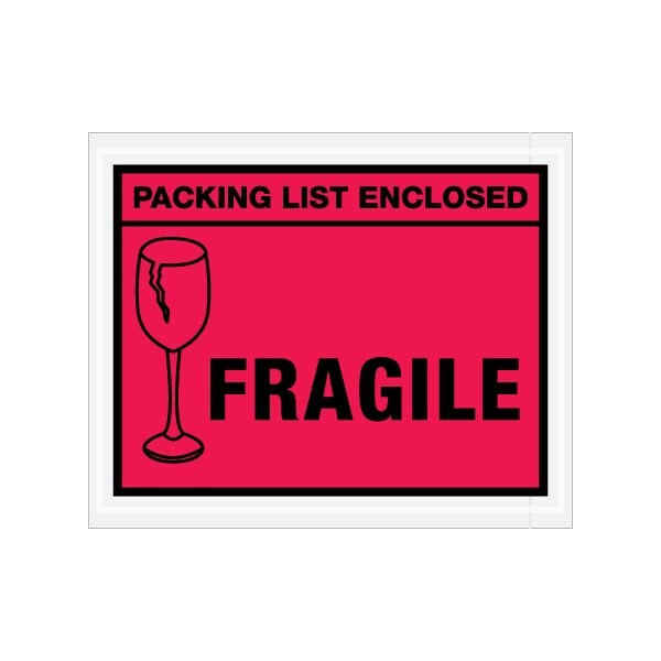 4-1/2 x 5-1/2'' Red ''Packing List Enclosed - Fragile'' Envelopes, 1000PK