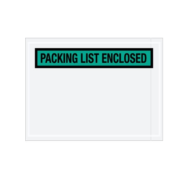 Pressure sensitive packing list envelopes secure and protect documents that are attached to the outside of shipments. Panel face, colored Packing List Envelopes are pre-printed with ''Packing List Enclosed'' on heavy 2 Mil poly; Hot melt adhesive backing provides strong adhesion to paper and corrugated products; Envelopes open along the first dimension. Sold in a quantity of 1000 per case.