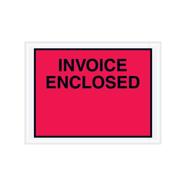 Pressure sensitive envelopes secure and protect documents that are attached to the outside of shipments. Pre-printed with ''Invoice Enclosed'' on heavy 2 Mil poly; Hot melt adhesive backing provides strong adhesion to paper and corrugated products; Envelopes open along the first dimension. This product is equivalent to part number: S-2327. Sold in a quantity of 1000 per case.