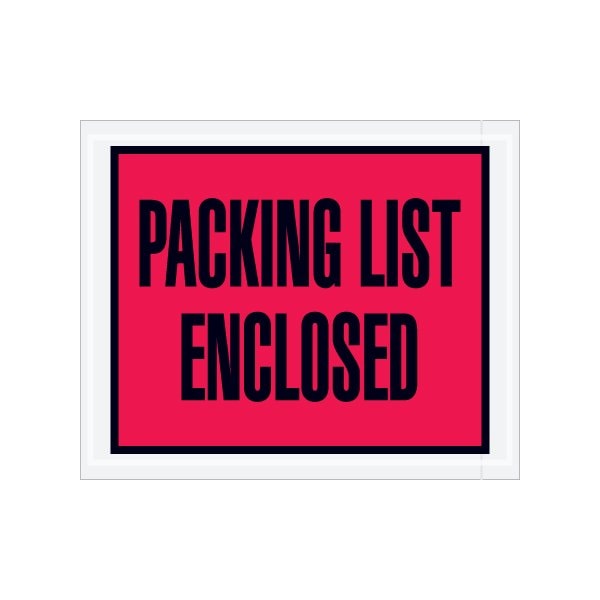 4-1/2 x 6'' Red Open End ''Packing List Enclosed'' Envelopes, 1000PK