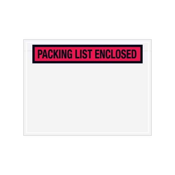 4-1/2 x 6'' Red Panel-Face ''Packing List Enclosed'' Envelopes, 1000PK