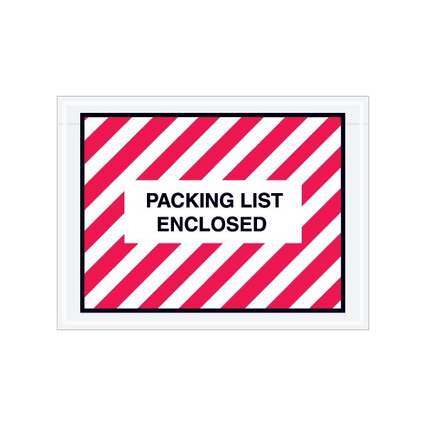 Pressure sensitive packing list envelopes secure and protect documents that are attached to the outside of shipments. Full face, colored Packing List Envelopes are pre-printed with ''Packing List Enclosed'' on heavy 2 Mil poly; Hot melt adhesive backing provides strong adhesion to paper and corrugated products; Envelopes open along the first dimension. This product is equivalent to part number: S-1687. Sold in a quantity of 1000 per case.