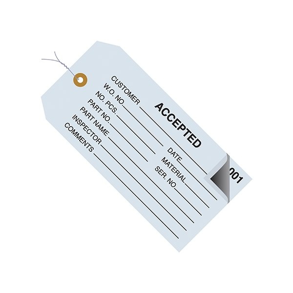 4 3/4 x 2-3/8'' - ''Accepted'' Inspection Tags 2 Part - Numbered 000 - 499 - Pre-Wired, 500PK