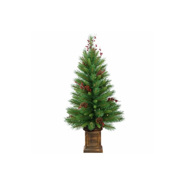 4 Woodland Berry Artificial Entrance Tree With Pine Cones & Red Berries Prelit With 50 Clear Lights Stands In Square Decorative Pot 135 Mixed Tips 22 Diameter.