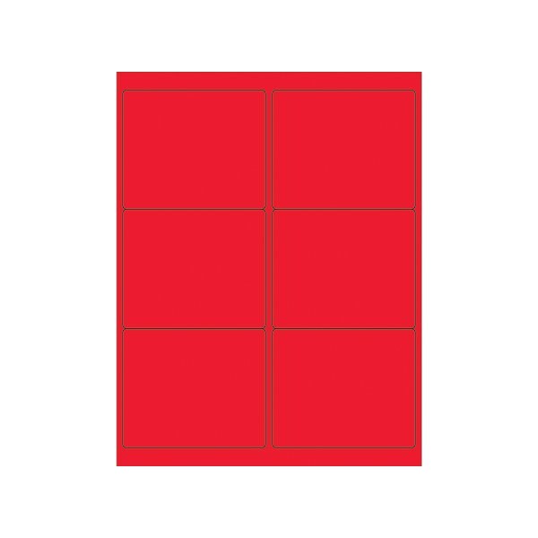 4 x 3 1/3'' Fluorescent Red Rectangle Laser Labels, 600PK