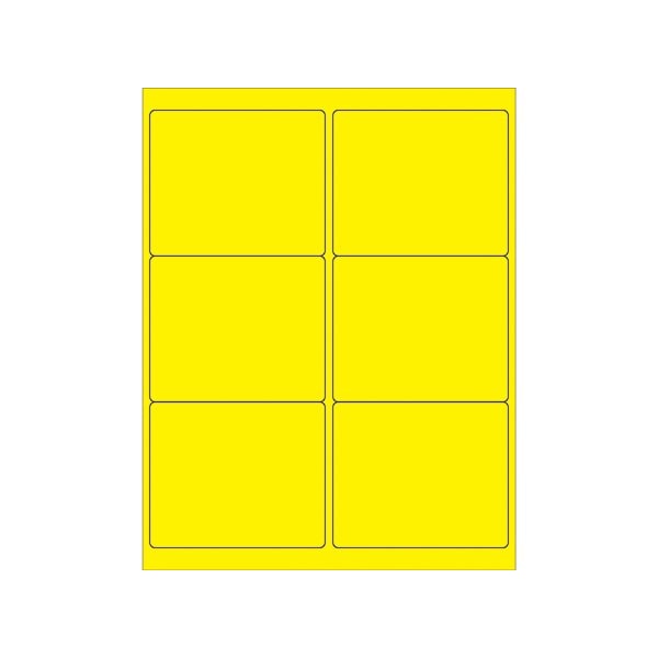 4 x 3 1/3'' Fluorescent Yellow Rectangle Laser Labels, 600PK