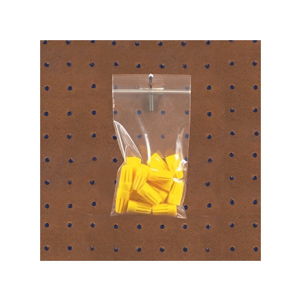 Single track zipper extends the width of the bag and keeps products clean and free from moisture. Pre-punched hole in the lip of the bag allows bags to be hung; Great for retail applications; Reclosable bags can be reused; Bags meet FDA and USDA requirements; Sizes listed are the inside usable dimensions of the bag. Sold in a quantity of 1000 per case.
