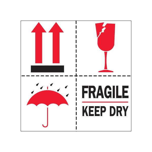 4 x 4'' - ''Fragile - Keep Dry'' Labels