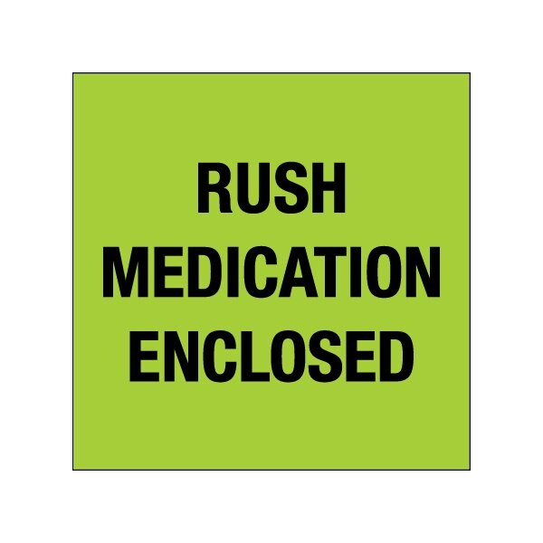 4 x 4'' - ''Rush - Medication Enclosed'' Fluorescent Green Labels