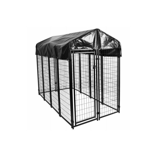 Pet Essentials Weld Wire Kennel 4x8x6 in Color Box. The Premium Dog Kennel Kit features a durable all-steel welded wire-constructed dog kennel and a waterproof cover. This kennel is easy to assemble with no tools needed very stylish safe for all dogs and puppies and its an excellent alternative to standard dog kennels. Most importantly you can feel confident that your new premium kennel meets the highest safety and quality standards.