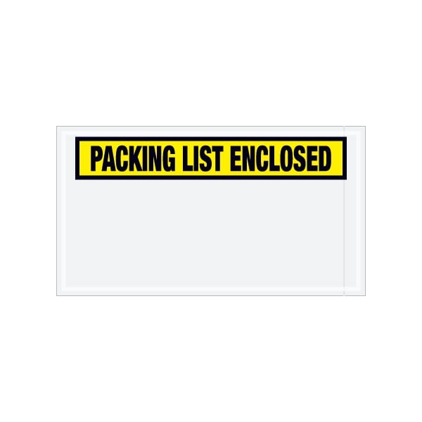 Pressure sensitive packing list envelopes secure and protect documents that are attached to the outside of shipments. Panel face, colored Packing List Envelopes are pre-printed with ''Packing List Enclosed'' on heavy 2 Mil poly; Hot melt adhesive backing provides strong adhesion to paper and corrugated products; Envelopes open along the first dimension. This product is equivalent to part number: S-5290. Sold in a quantity of 1000 per case.