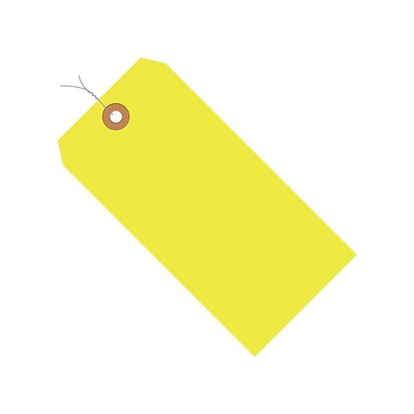 5 1/4 x 2 5/8'' Fluorescent Yellow 13 Pt. Shipping Tags - Pre-Wired, 1000PK