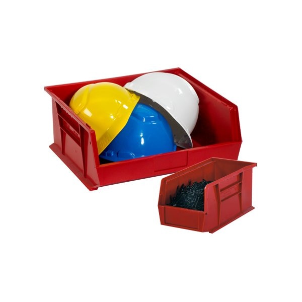 Keep small parts organized. Durable plastic construction; Flat front panel is perfect for labeling; Bins stack to save space; Maximize the efficiency of bins by using Bin Divider stock number BIND101; May be used with Bin Organizers; Sold by the individual bin in case quantities; Inside Dimensions: 4 3/4 x 3 7/16 x 2 13/16''; Fits shelf size 5 3/8''; Optional Label Holders available. This product is equivalent to part number: S-12413R. Sold in a quantity of 24 per case.