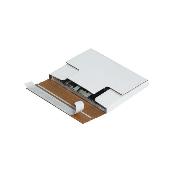 Strong corrugated mailers designed to ship CDs and feature a convenient self seal, peel and seal strip. One piece die cut cartons fold together in seconds; Seal mailers by peeling backing off of adhesive strip and pressing closed; Mailers feature a pull tab for opening; Designed to ship CDs in jewel cases; Manufactured from 200#-E/ECT-32 white corrugated; Disc capacity: 1 CD. Sold in a quantity of 200 per pack.