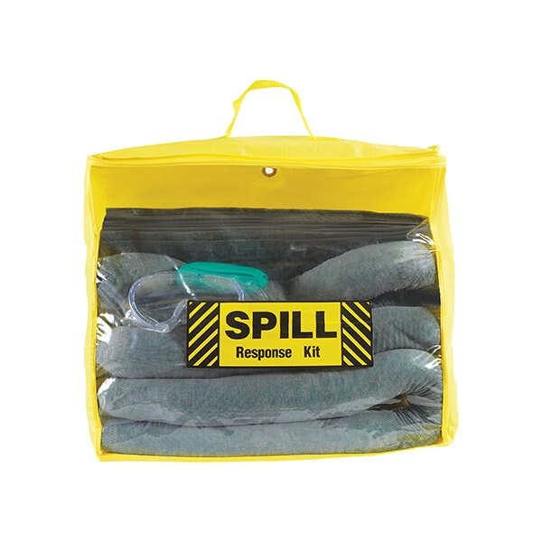 Clear bag is easy to handle and carry and keeps the contents visible. Zipper bag keeps sorbents clean and protected when not in use; Each kit has grommets, allowing it to be mounted on walls or other surfaces; Absorbs water, oil, gas, coolants, cutting fluids, hydraulic fluids, vegetable oil, acetone, turpentine and more; Kit includes: 20 single-weight 16 x 18'' Universal Pads, 3 3'' x 4' Universal Socks, 1 pr. Nitrile Gloves, 1 pr. Splash Goggles, 1 Disposable Bag, 1 Clear Zipper Bag. This product is equivalent to part number: S-12200.